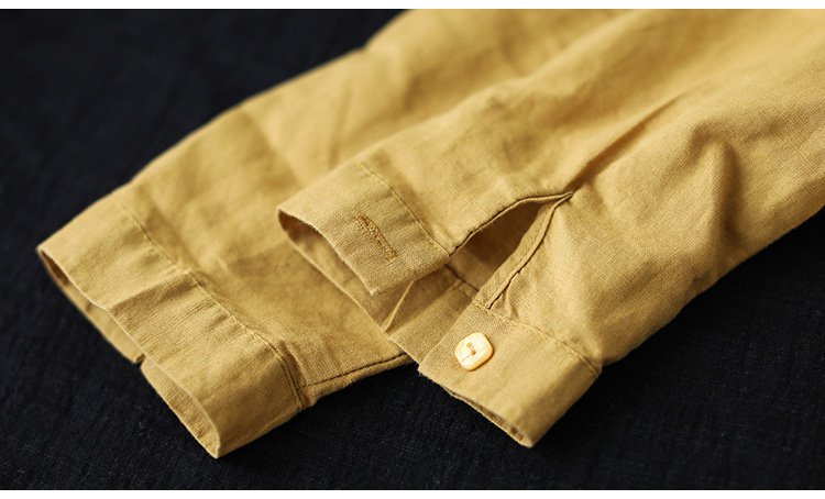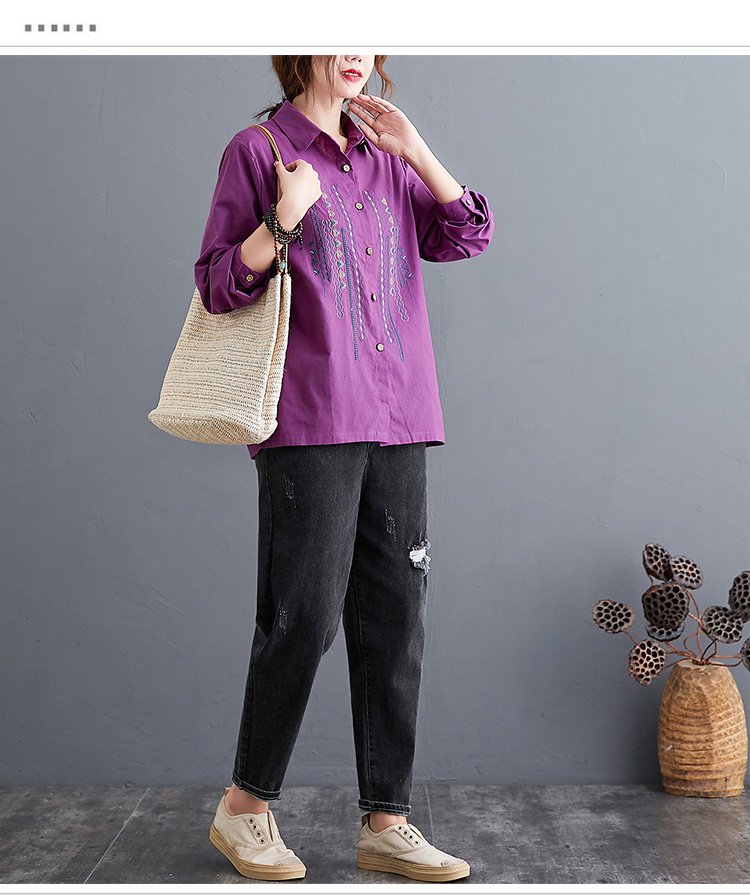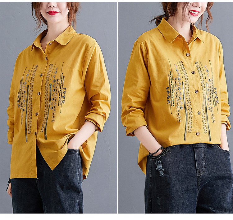 เสื้อเชิ็ตแขนยาว คอพับ ผ้าคอตตอนลินินปัดลาย ทรงหลวม